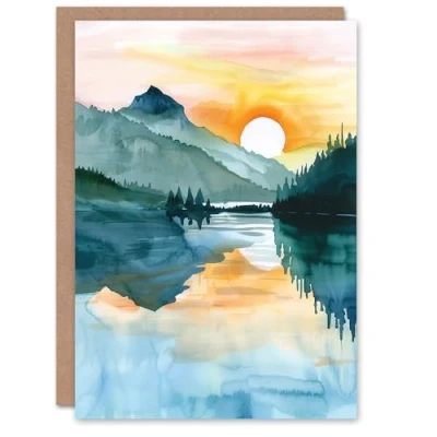 Artery8 Greeting Card Sun Rising Over Lake Blanche Mountain Landscape Blank For Him Or Her Art Birthday