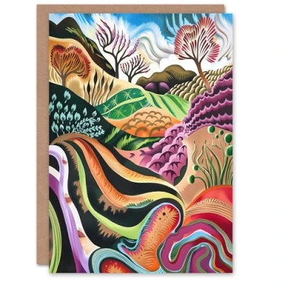 Artery8 Greeting Card Sutton Bank North York Moors Trippy Painting Blank For Him Or Her Art Birthday