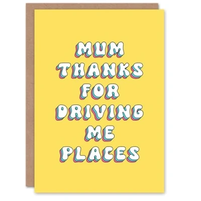 Artery8 Greeting Card Thanks For Driving Me Places Bright Retro Yellow Mum Mummy Mom Birthday