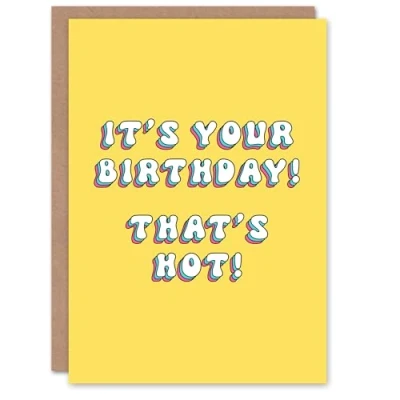 Artery8 Greeting Card That's Hot Cute Fun Bright Retro Yellow For Her Woman Wife Mum Daughter Girl Birthday