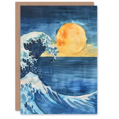 Artery8 Greeting Card The Great Wave Sunrise Seascape Watercolour Blank For Him Or Her Art Birthday