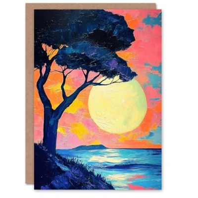 Artery8 Greeting Card Tree Silhouette By Sea Large Sunset Sun Seascape Blank For Him Or Her Art Birthday