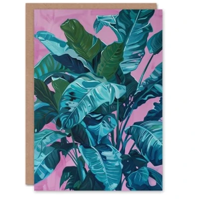 Artery8 Greeting Card Tropical Plant Lover Pink Teal Blue Painting Blank For Him Or Her Art Birthday