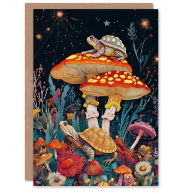 Artery8 Greeting Card Turtle Toads Colourful Psychedelic Magic Mushroom Blank For Him Or Her Art Birthday