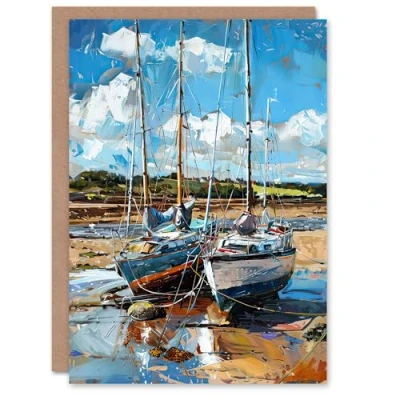 Artery8 Greeting Card Two Sailboats on Alnmouth Beach Painting Coastal Blank For Him Or Her Art Birthday
