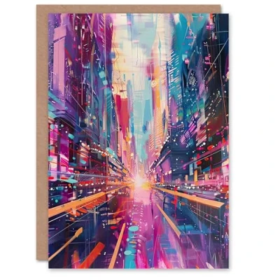 Artery8 Greeting Card Vibrant Japan Abstract Tokyo City Painting Blank For Him Or Her Art Birthday