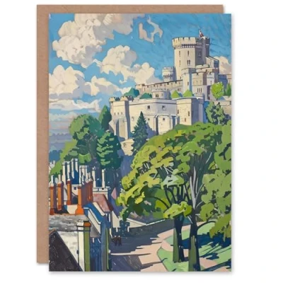 Artery8 Greeting Card View of Windsor Castle Oil Painting Royal Family Blank For All Him Or Her Art Birthday