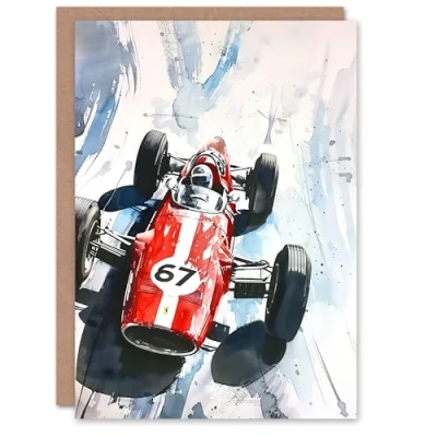 Artery8 Greeting Card Vintage Race Car Motor Sport Racing Painting For Him Man Birthday
