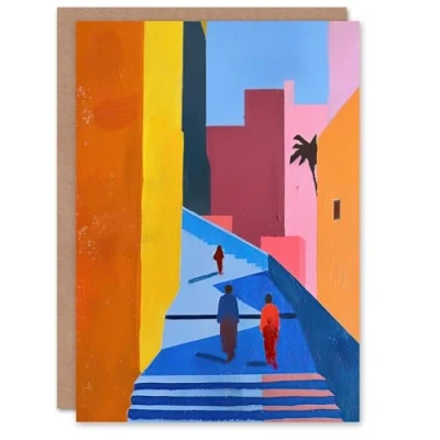Artery8 Greeting Card Walk Though Casablanca Abstract Morocco Painting Blank For Him Or Her Art Birthday
