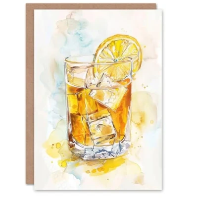 Artery8 Greeting Card Whiskey Highball Cocktail Lemon Bar Watercolour Blank For All Him Or Her Art Birthday
