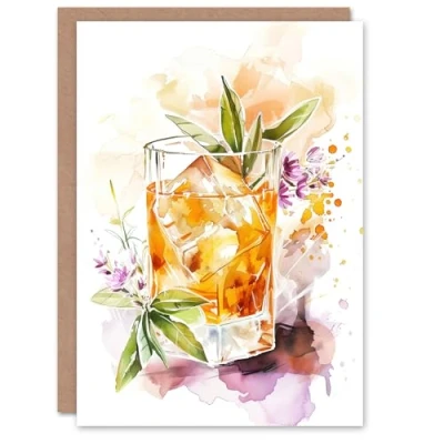 Artery8 Greeting Card Whiskey Smash Blue Basil Cocktail Bar Watercolour Blank For All Him Or Her Art Birthday