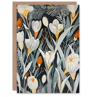 Artery8 Greeting Card White Crocus Flower Garden Artwork Dark Floral For Her Woman Birthday