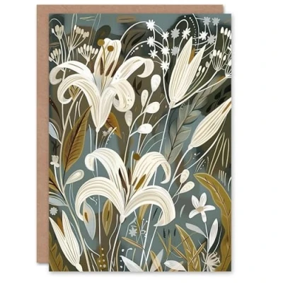 Artery8 Greeting Card White Lilies Flower Blooms Floral Artwork Blank For All Him Or Her Art Birthday