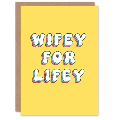 Artery8 Greeting Card Wifey For Lifey Fun Cute Retro Yellow Her Wife Woman Girlfriend Birthday