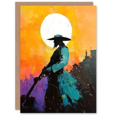 Artery8 Greeting Card Wild West Sunset Desperado Cowboy Concept Art Blank For Him Or Her Birthday