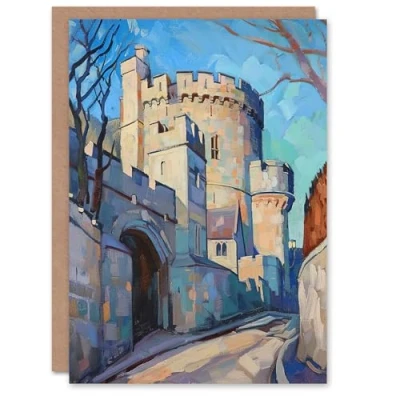 Artery8 Greeting Card Windsor Castle UK Royal King Charles Oil Painting Blank For All Him Or Her Art Birthday