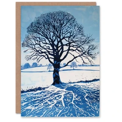 Artery8 Greeting Card Winter Oak Tree Silhouette Snow Field Landscape Blank For Him Or Her Art Birthday