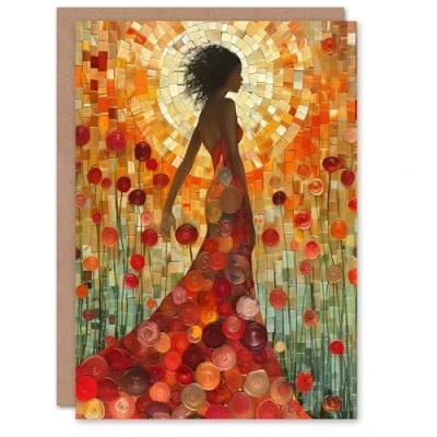 Artery8 Greeting Card Woman With Dress Of Roses Sunset Mosaic Collage Blank For All Him Or Her Art Birthday
