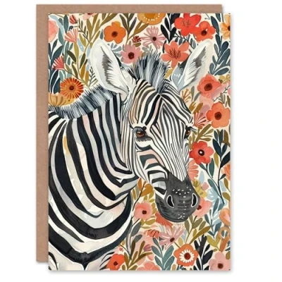 Artery8 Greeting Card Zebra in Wildflower Meadow Floral Watercolour For Her Woman Birthday