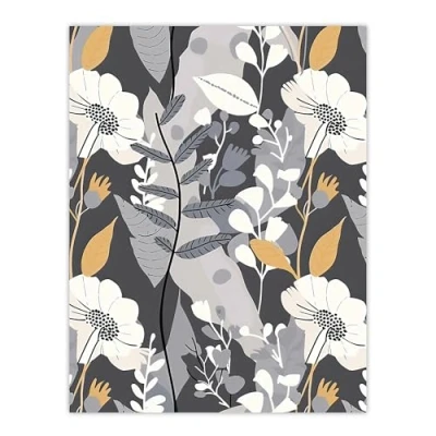 Artery8 Grey Orange Wildflower Design Floral Pattern Living Room Extra Large XL Wall Art Poster Print