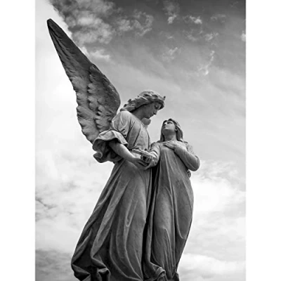 Artery8 Greyscale Angel Statue Cloudy Sky Photo Large XL Wall Art Canvas Print