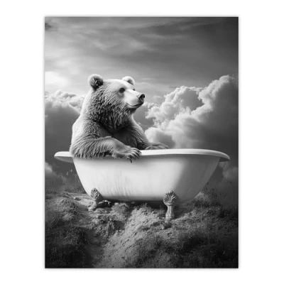 Artery8 Grizzly Bear Mountain Bathtub Black White Surreal Bathroom Toilet Extra Large XL Wall Art Poster Print