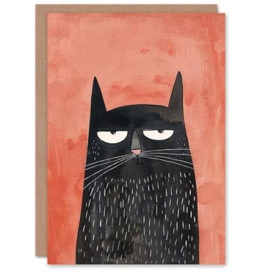 Artery8 Grumpy Pet Black Cat Lover Cartoon Watercolour Blank For Him Or Her Art Birthday Card