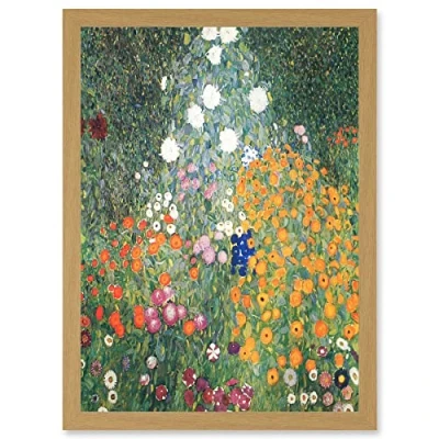 Artery8 Gustav Klimt Flower Garden 1907 Art Nouveau Floral Home Painting A4 Artwork Framed Wall Print