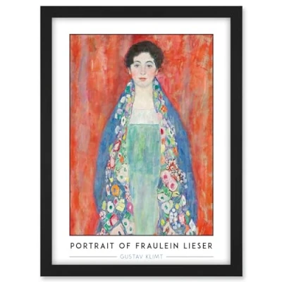 Artery8 Gustav Klimt Lost Painting Portrait of Fraulein Lieser Reproduction Vintage Artwork Framed A3 Wall Art Print