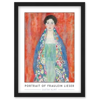 Artery8 Gustav Klimt Lost Painting Portrait of Fraulein Lieser Reproduction Vintage Artwork Framed Wall Art Print A4