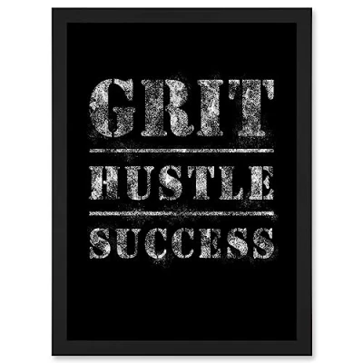 Artery8 Gym Inspiration Grit Hustle Respect Exercise Workout Motivational Decor Artwork Framed A3 Wall Art Print