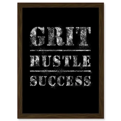 Artery8 Gym Inspiration Grit Hustle Respect Exercise Workout Motivational Decor Artwork Framed Wall Art Print A4