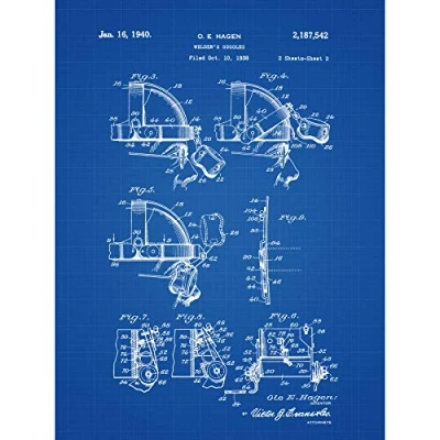 Artery8 Hagen Welders Goggles Metal Steel Work Side 1940 Patent Plan Premium Wall Art Canvas Print 18X24 Inch