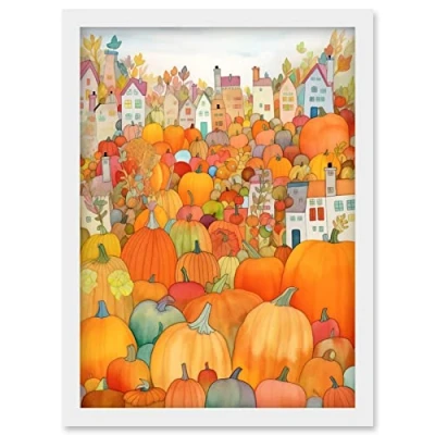 Artery8 Halloween Pumpkin Festival Autumn Harvest Modern Folk Art Watercolour Painting Artwork Framed Wall Print A4