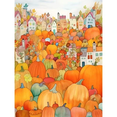 Artery8 Halloween Pumpkin Festival Autumn Harvest Modern Folk Art Watercolour Painting Extra Large XL Wall Poster Print