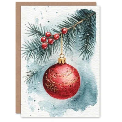 Artery8 Hanging Red Gold Bauble Tree Ornament For Her Woman Xmas Festive Christmas Card
