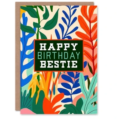 Artery8 Happy Birthday Card Plant Lover Bold Botanical Friend Bestie Blank For Him Or Her Art Greeting