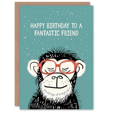 Artery8 Happy Birthday Card to a Fantastic Friend Cheeky Chimp Nerd Chimpanzee Monkey