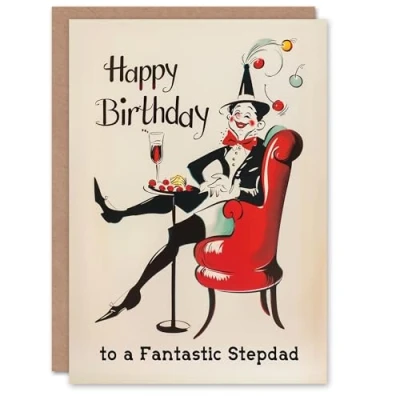Artery8 Happy Birthday Card to a Fantastic Stepdad Laughing French Clown Party