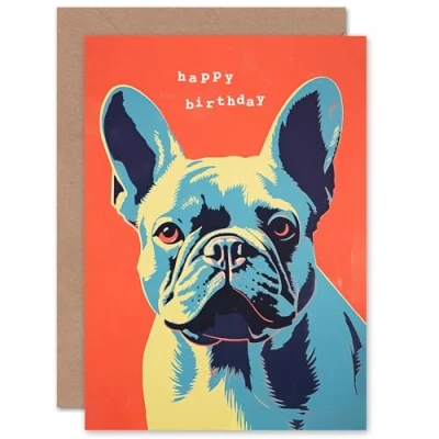 Artery8 Happy Birthday Cute Dog Lover French Bulldog For Him Her Blank Inside Greeting Card