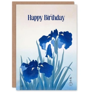 Artery8 Happy Birthday Ohara Koson Iris Flowers Vintage Card