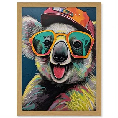 Artery8 Happy Koala Bear Sunglasses and Hat Modern Pop Art Artwork Framed A3 Wall Print