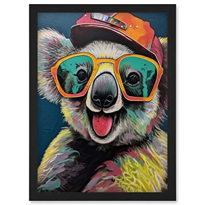 Artery8 Happy Koala Bear Sunglasses and Hat Modern Pop Art Artwork Framed Wall Print A4