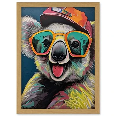 Artery8 Happy Koala Bear Sunglasses and Hat Modern Pop Art Artwork Framed Wall Print A4
