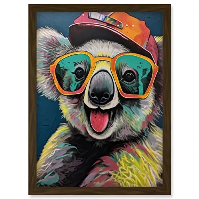 Artery8 Happy Koala Bear Sunglasses and Hat Modern Pop Art Artwork Framed Wall Print A4