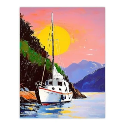 Artery8 Harbour Sunset Docked Sailboat Coastal Landscape Bathroom Toilet Extra Large XL Wall Art Poster Print
