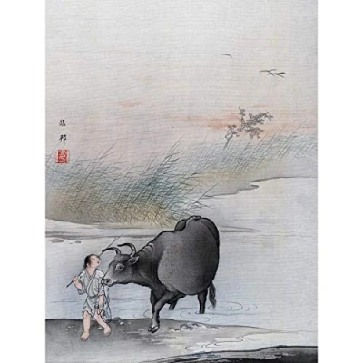 Artery8 Hashimoto Gaho Crossing Cow Japanese Painting Premium Wall Art Canvas Print 18X24 Inch
