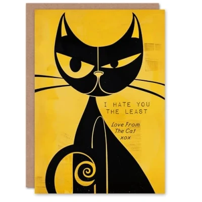 Artery8 Hate You Least From The Cat Mid Century Modern Blank For Him Or Her Art Birthday Card