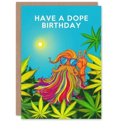 Artery8 Have A Dope Day Happy Colourful Beard Hippie Blank For Him Or Her Art Birthday Card