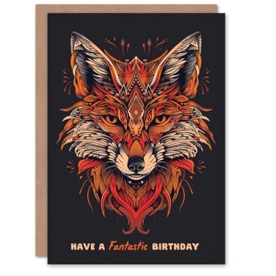 Artery8 Have A Fantastic Day Modern Tribal Fox Head Blank For Him Or Her Art Birthday Card